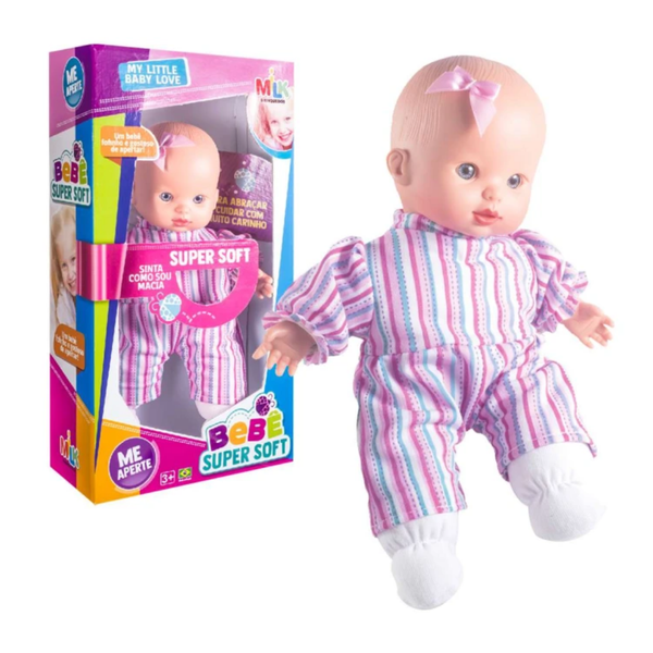 Bebê Super Soft é a bonequinha perfeita para abraços e momentos de carinho! Seu corpinho fofinho em tecido com enchimento torna cada abraço irresistível, enquanto a cabeça e as mãozinhas em vinil macio proporcionam uma sensação realista e delicada. O corpo e as pernas macias e perfumadas com um delicioso cheirinho de bebê completam a experiência, tornando a brincadeira ainda mais envolvente.