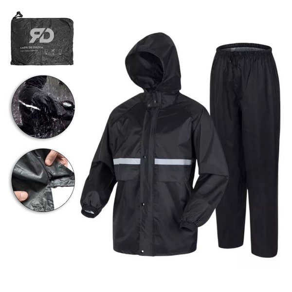 Enfrente os dias de chuva com conforto e segurança com o Conjunto Impermeável para Motoqueiros, desenvolvido com tecido de poliéster de alta qualidade e costuras reforçadas para máxima resistência e durabilidade. Perfeito tanto para o piloto quanto para o garupa, o conjunto garante liberdade nos movimentos e total proteção contra a água.