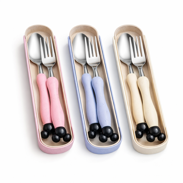 O Kit Talher Infantil com Estojo é ideal para crianças que estão aprendendo a se alimentar sozinhas, oferecendo conforto, segurança e muito estilo.