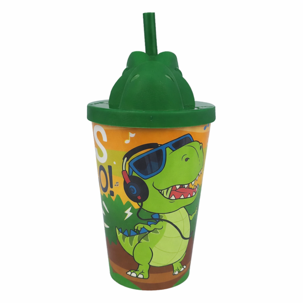Copo Infantil com Canudo 350ml – Dino, Gatinha, Unicórnio e Tubarões