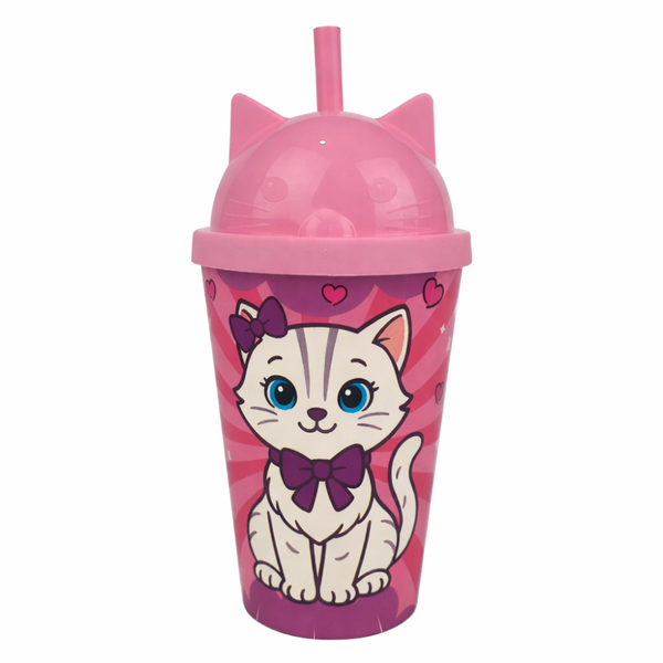 Copo Infantil com Canudo 350ml – Dino, Gatinha, Unicórnio e Tubarões