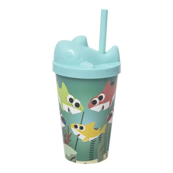 Copo Infantil com Canudo 350ml – Dino, Gatinha, Unicórnio e Tubarões
