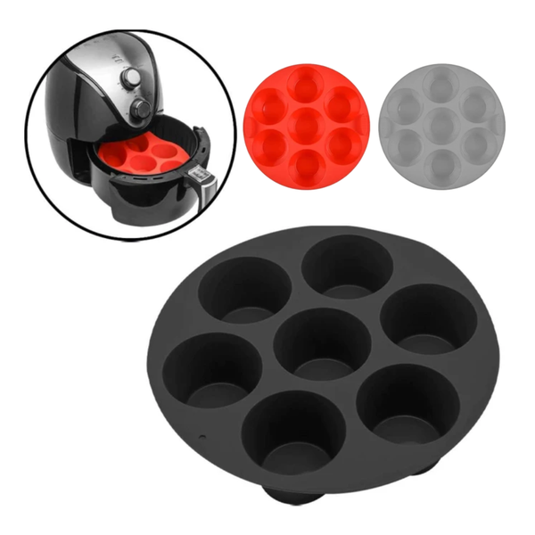 Forma Assadeira de Silicone para Air Fryer com 7 Cavidades – Ideal para Cupcakes, Muffins, Ovos e Muito Mais