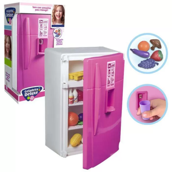 A Geladeira Deluxe conta com prateleiras internas e na porta, espaço para organizar comidinhas, legumes, caixinhas de alimentos e até forminha de gelo. Além disso, acompanha diversos acessórios que estimulam a imaginação e proporcionam momentos inesquecíveis entre amigos e familiares.
