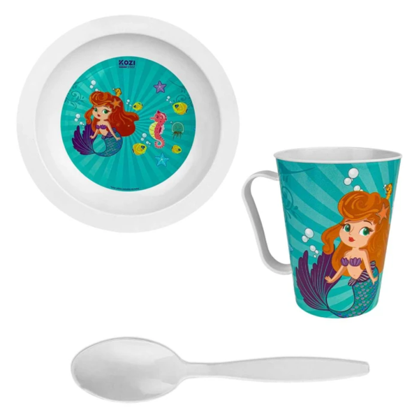 Fabricado em plástico seguro e resistente, o kit é ideal para uso diário e para tornar cada refeição mais prática e encantadora para os pequenos.