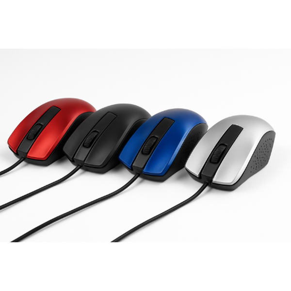 Disponível em quatro cores modernas — vermelho metálico, azul metálico, preto fosco e prata metálico — combina com qualquer estilo de setup. A conexão USB garante instalação rápida e compatibilidade universal, enquanto o sensor óptico oferece movimentos precisos e suaves.