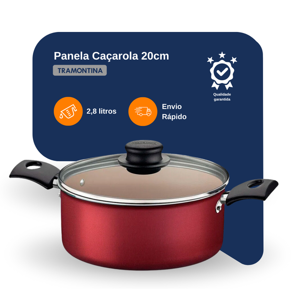Caçarola Tramontina Turim em Alumínio com Revestimento Antiaderente Starflon Max – Vermelha