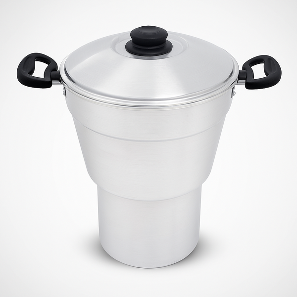 Fabricada em alumínio de alta qualidade, a Cuscuzeira garante cozimento rápido e uniforme dos alimentos, preservando os sabores e aromas característicos da culinária nordestina. O alumínio, por ser um excelente condutor de calor, otimiza o tempo de preparo, além de ser leve e fácil de manusear.
