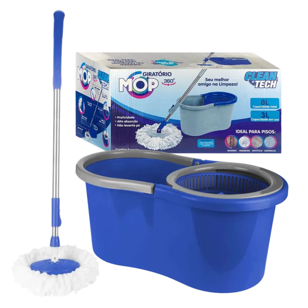 Tenha mais praticidade e agilidade na sua rotina de limpeza com o Mop Balde Esfregão Giratório, disponível nas opções de 8 litros e 13 litros. Com sistema de centrifugação giratório, ele permite lavar e secar o refil de microfibra sem contato direto com a sujeira, garantindo mais higiene e conforto.