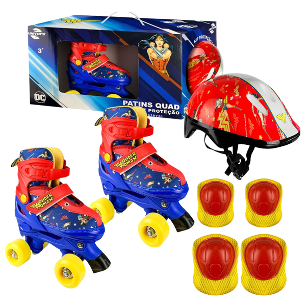 O Roller Patins Mulher Maravilha Unitoys é perfeito para meninas que desejam unir diversão, estilo e segurança em todas as suas aventuras!